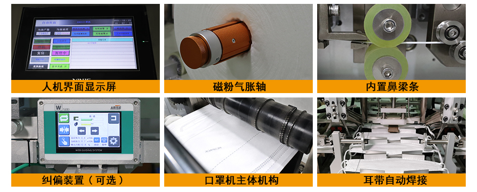 可根據(jù)生產(chǎn)工藝及市場(chǎng)需求自由選配生產(chǎn)3到4層魚型KF94口罩。從 無(wú)紡布 ?口罩成型 ?口罩切斷分離 ? 口罩分流 ? 口罩耳帶焊接機(jī)   全自動(dòng)完成。效率翻倍,個(gè)性化人機(jī)界面,參數(shù)化速度控制,一鍵提速化繁為簡(jiǎn),操作簡(jiǎn)單。設(shè)備智能,單臺(tái)耳帶焊接機(jī)故障不影響整機(jī)的運(yùn)行。